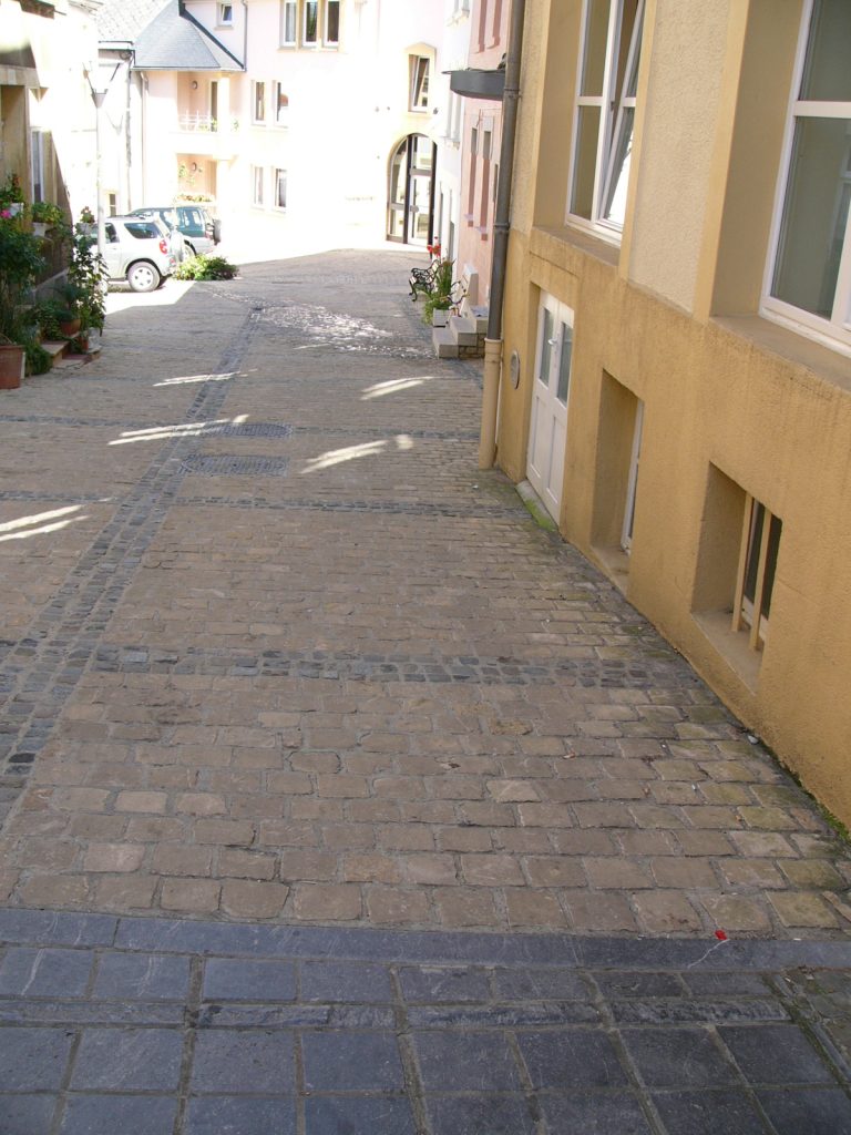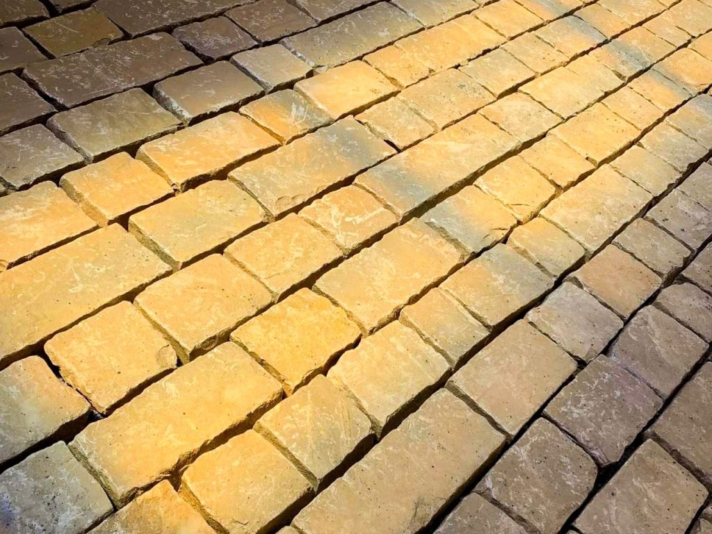Pavés cubiques ou rectangulaires présentant une surface naturellement anti-dérapante prévus pour les aménagements de sols extérieurs tels que terrasses, trottoirs, voiries,…