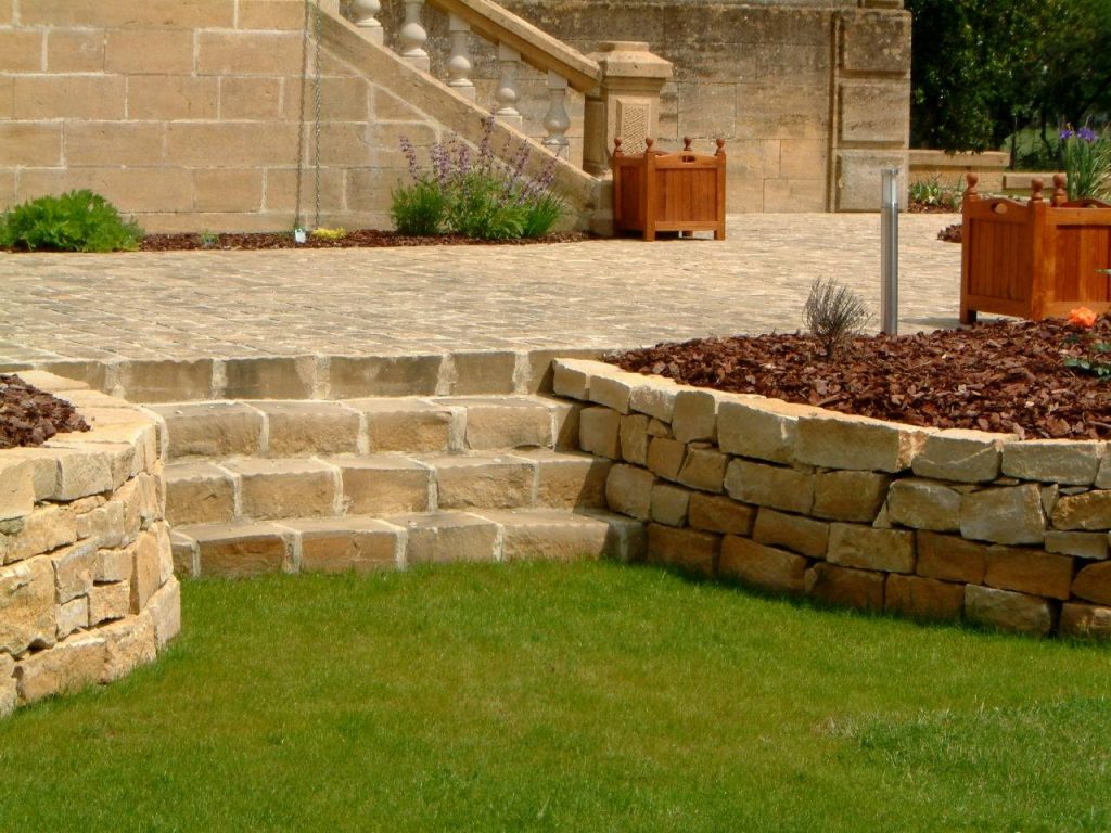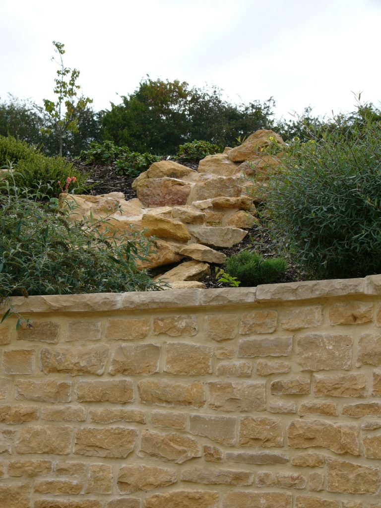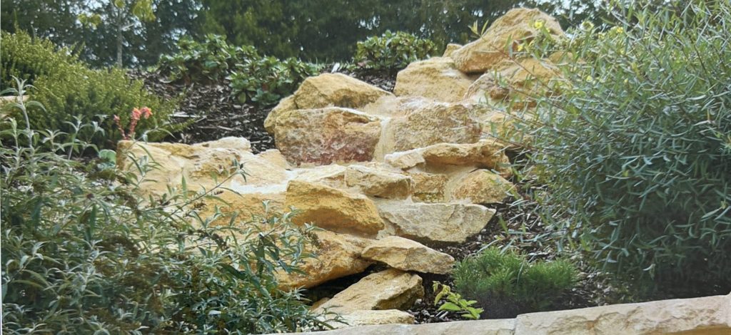 Pierres posées à sec ou maçonnées destinées à la réalisation de murets, pourtours de pièces d’eau et aménagements de jardins divers.